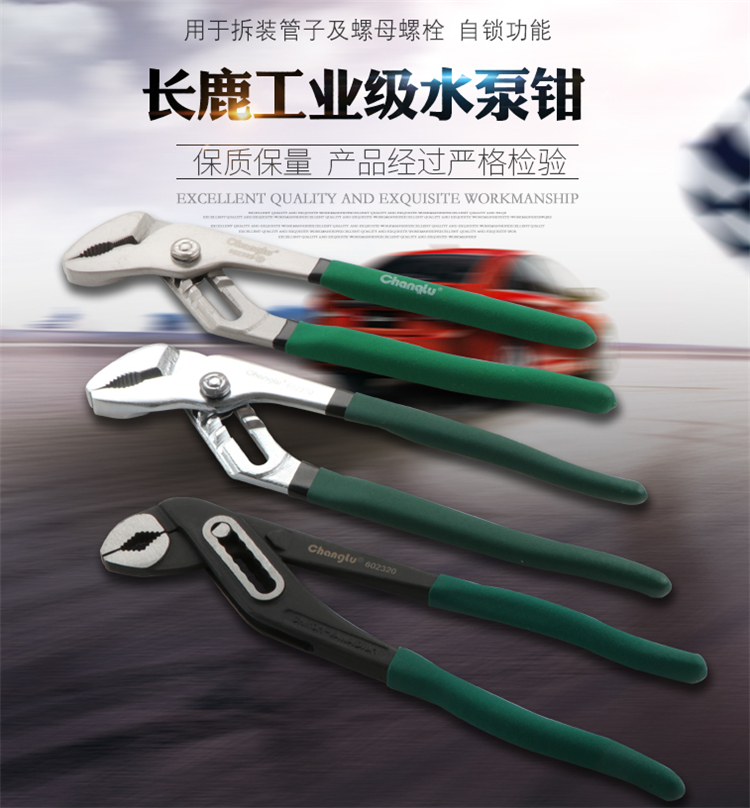 長鹿多功能水泵鉗優質鉻釩鋼投敵,用于拆裝管子及螺母螺栓,自鎖功能。
