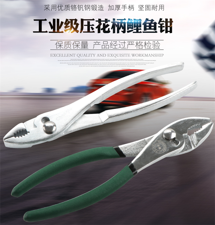 多功能汽修鯉魚鉗子采用優(yōu)質(zhì)鉻釩鋼鍛造,加厚手柄、堅固耐用。