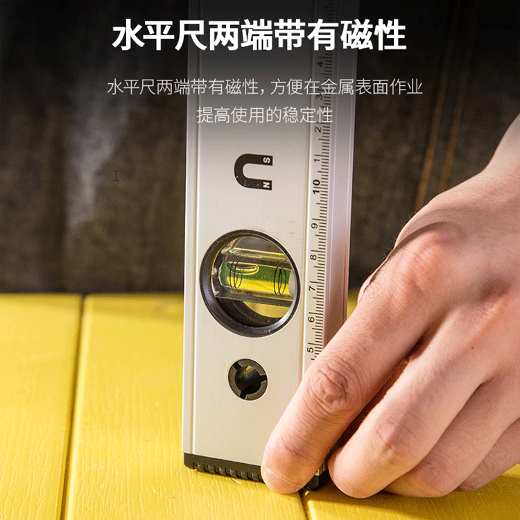 水平尺水平尺兩端帶有磁性,方便在金屬表面作業,提高使用的穩定性