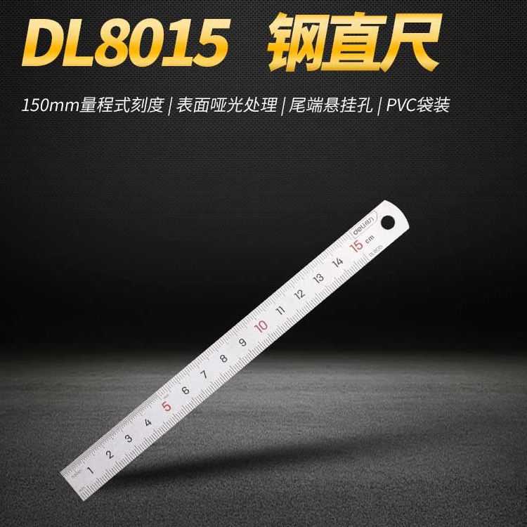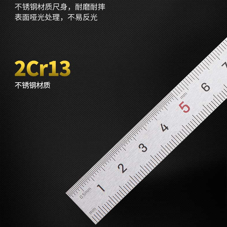 鋼直尺不銹鋼材質尺身,耐磨耐摔,表面啞光處理,不易反光