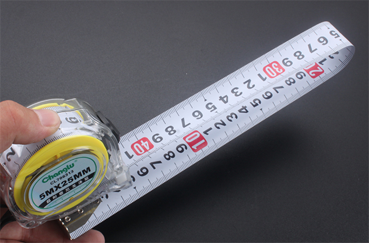 長鹿透明塑殼雙面鋼卷尺透明工程塑料外殼,手感舒適,堅固耐用。