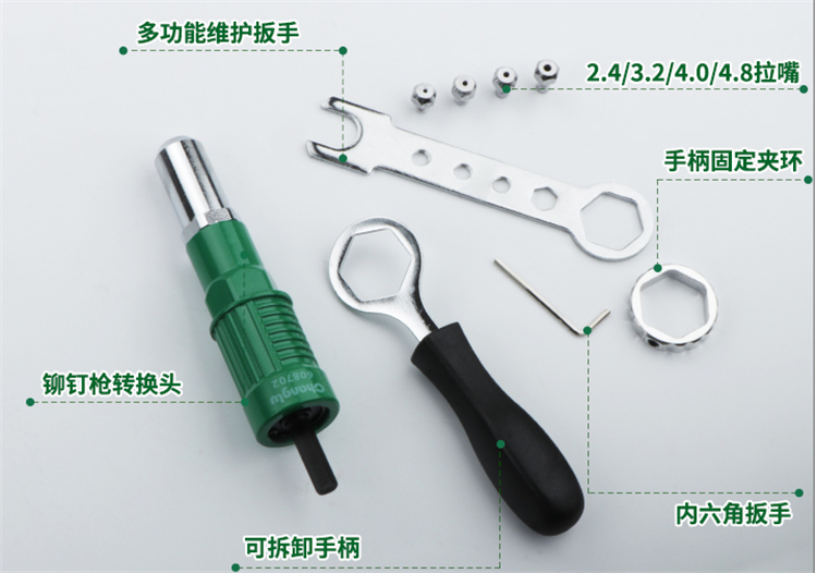 長鹿電動拉鉚釘槍高效省力、輕松便捷、經久耐用拉鉚釘槍轉換接頭