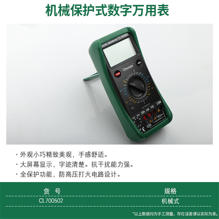 長鹿機(jī)械式多功能萬用表大屏幕顯示,字跡清楚,抗干擾能力強(qiáng)。全保護(hù)功能,防高