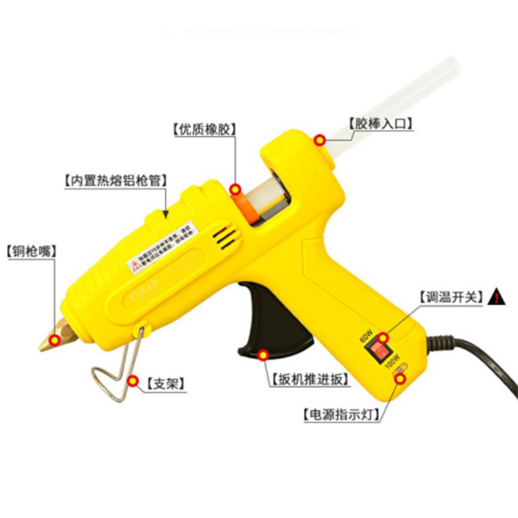 拓力普100W可調溫熱熔膠槍套裝,優質橡膠,防漏倒流,不易漏膠,不易倒膠。
