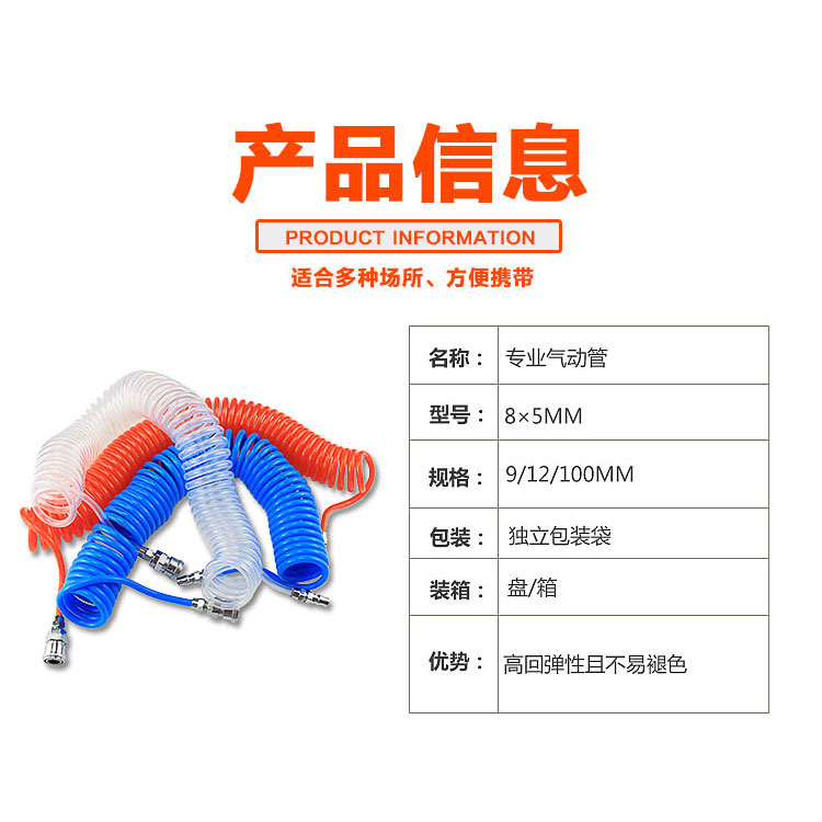 東成PU彈簧管氣動(dòng)氣泵配件空壓機(jī)氣槍螺旋氣管高壓伸縮軟管,