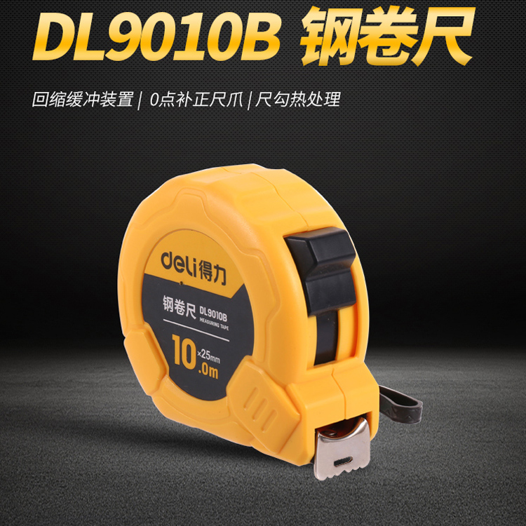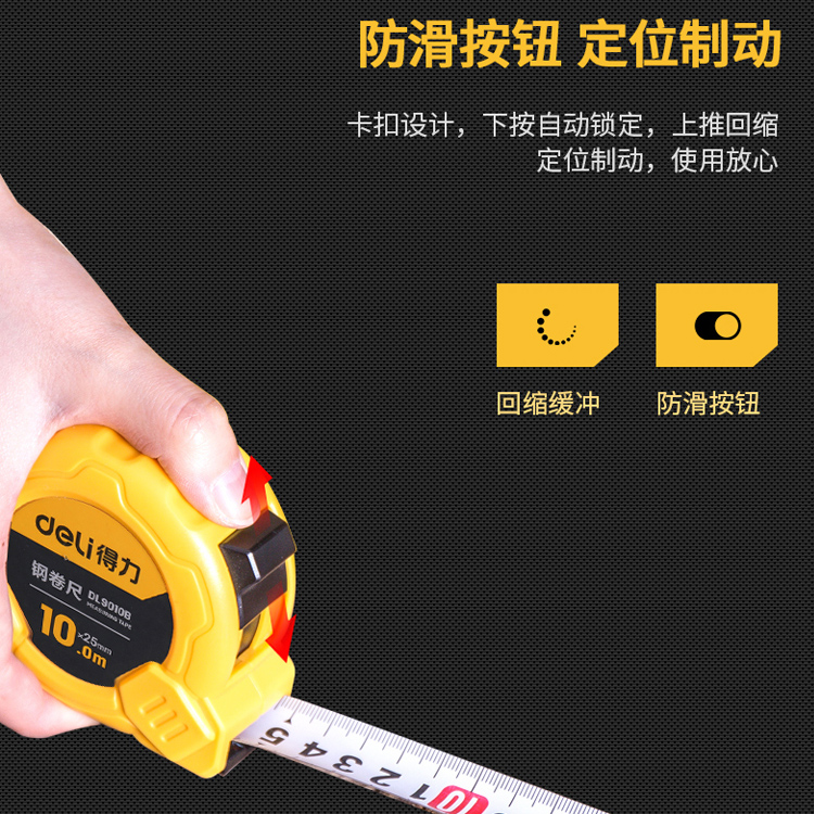 得力卷尺 10米 高精度鋼卷尺子 鋼尺盒尺木工鋼卷尺防滑耐磨