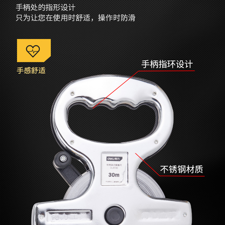 得力高精度鋼架尺架式鋼卷尺長鋼帶尺大卷尺手提尺皮尺50米100米