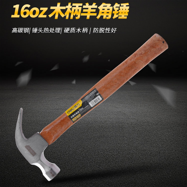 得力工具木柄羊角錘高碳鋼錘頭羊角錘錘子家用木錘