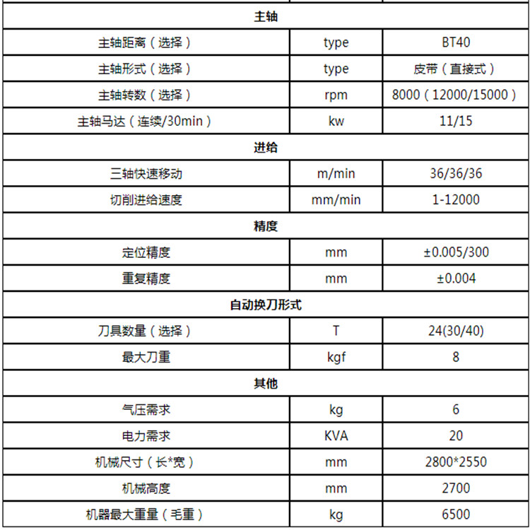 雅力士精機BT40高速加工中心VH1000參數
