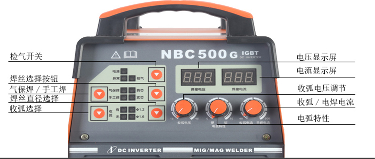上海東升氣保焊機NBC-500G逆變直流二氧化碳350G電焊機630I碳刨機控制面板,