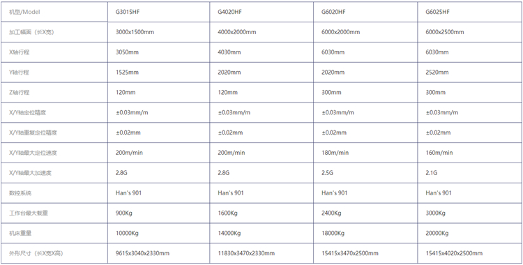 大族激光HF-Dragon系列高速激光切割機技術參數