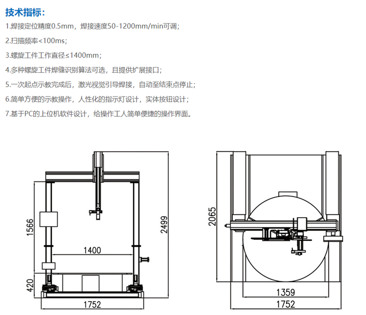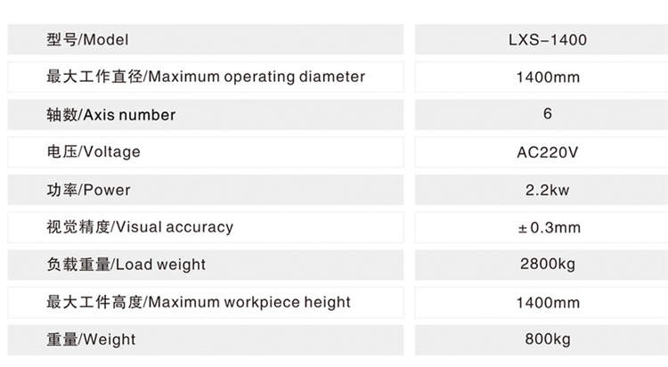 風云機器人激光視覺智能螺旋焊機機器人 LXS-1400技術參數圖