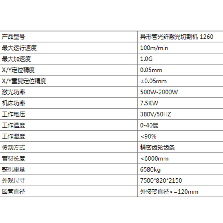 異形管光纖激光切割機參數圖展示