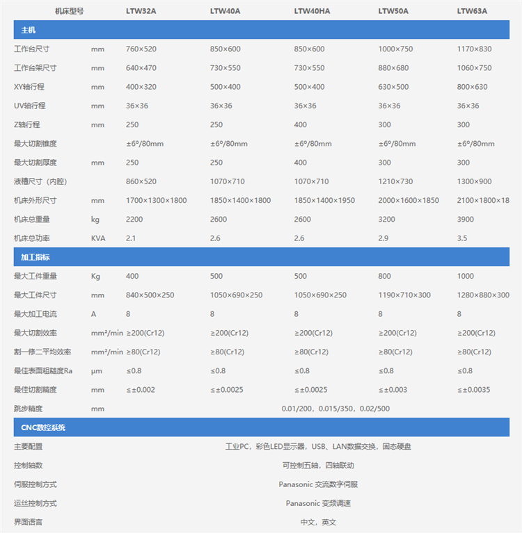 力同自動化伺服閉環中走絲線切割機床參數圖