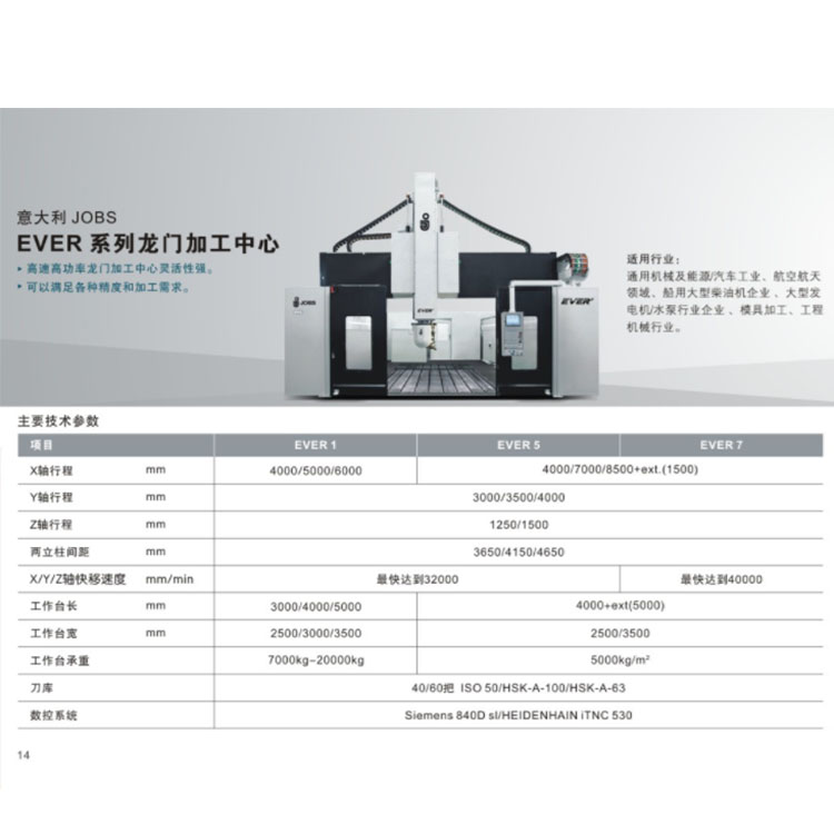 EVER系列龍門加工中心參數圖展示