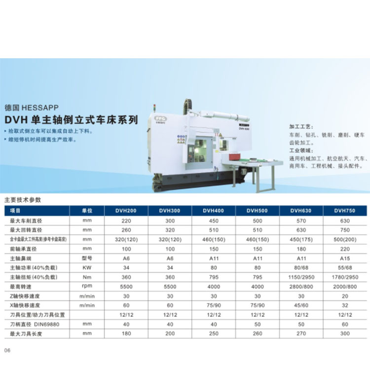 DVH單主軸倒立式車床系列通用機械加工、