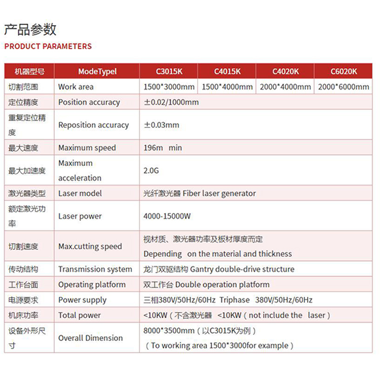 臺群光纖激光切割機C4020K,工作機構采用機械與氣動結合,性能穩