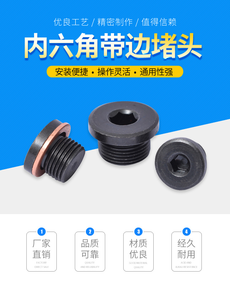 首頁工業五金緊固件堵頭內六角帶邊堵頭碳鋼密封堵頭油塞管堵悶頭經久耐用