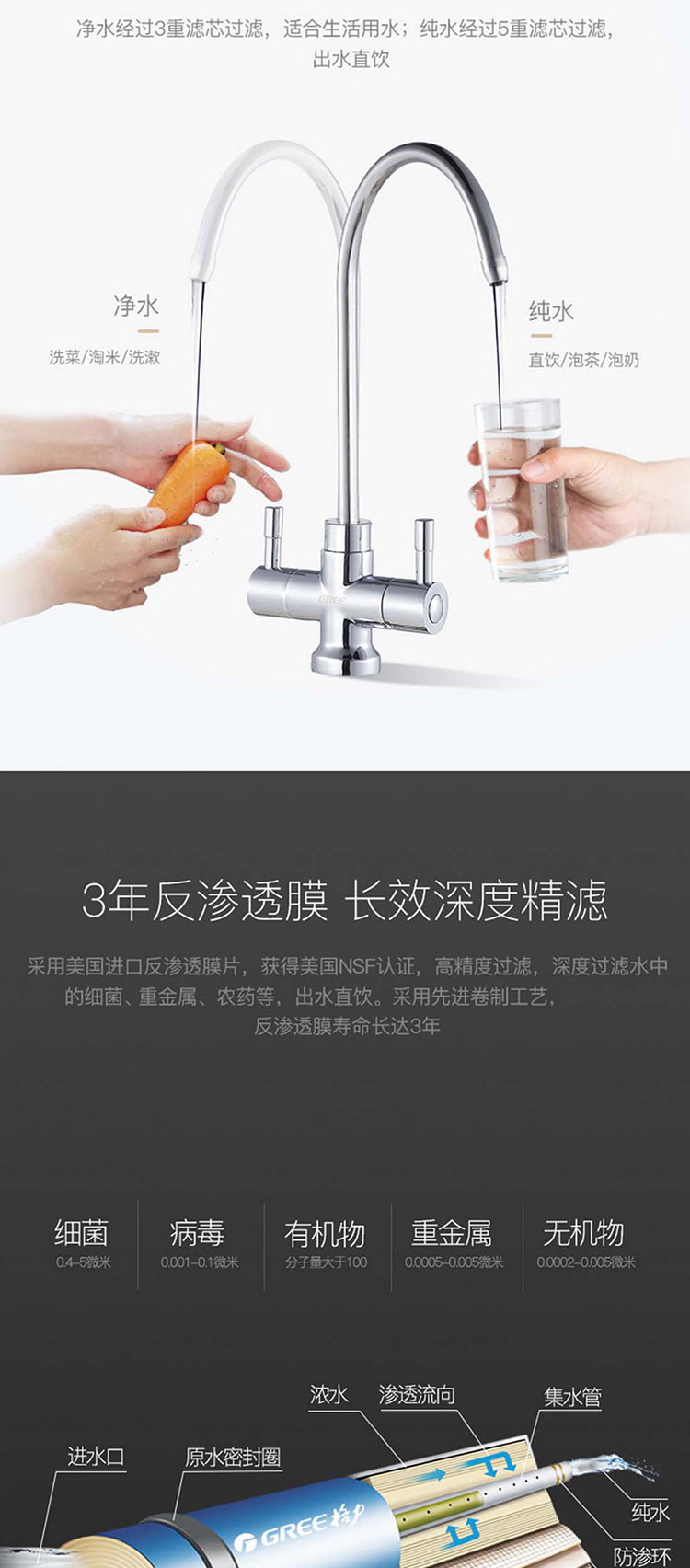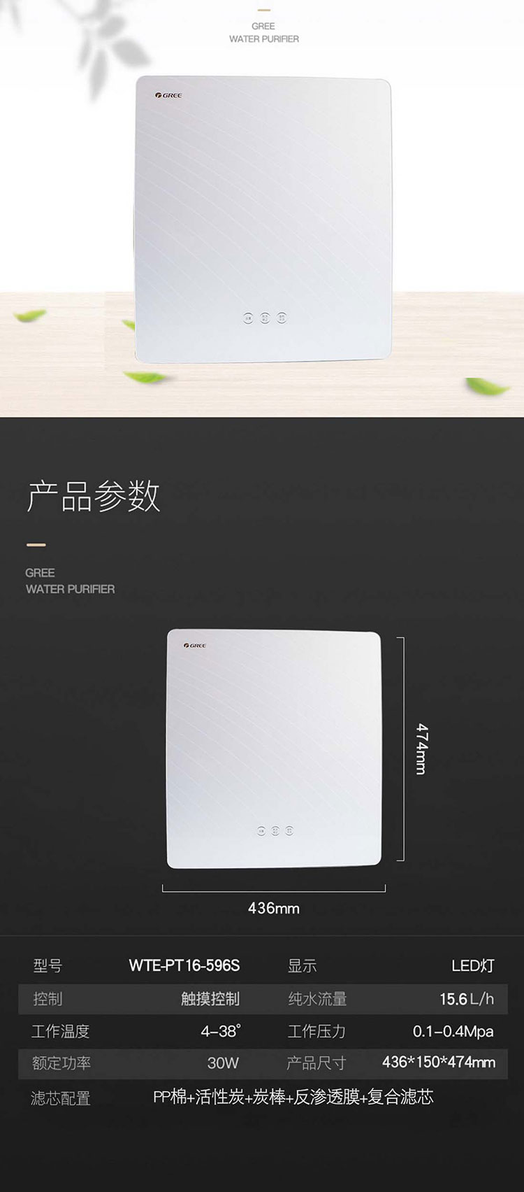 Gree/格力家用反滲透凈水機(jī)WTE-PT16-596S凈水器水質(zhì)凈化器自來水過濾器