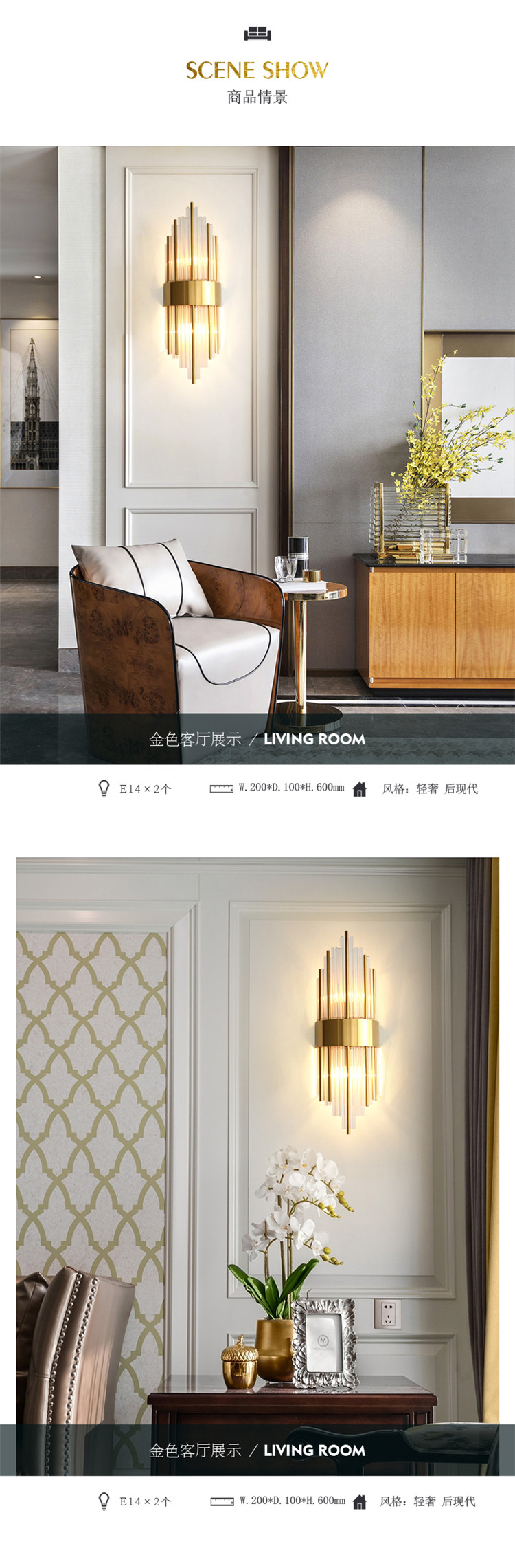 后現代水晶壁燈輕奢客廳背景墻簡約創意個性臥室床頭樓梯過道璧燈