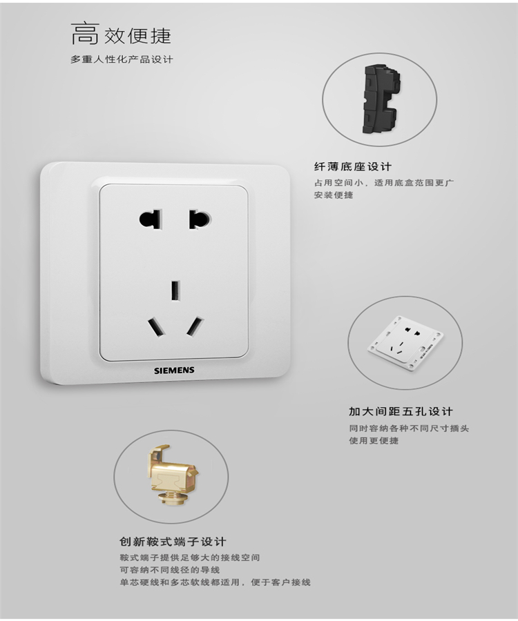 西門子 開關 映彩皓鋅白開關面板插座 一站式快速選購