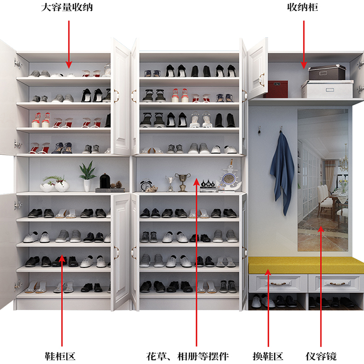 鞋柜選擇定做鞋柜的話,一般會相對靈活一些,比如玄關鞋柜不僅具備放鞋功能,