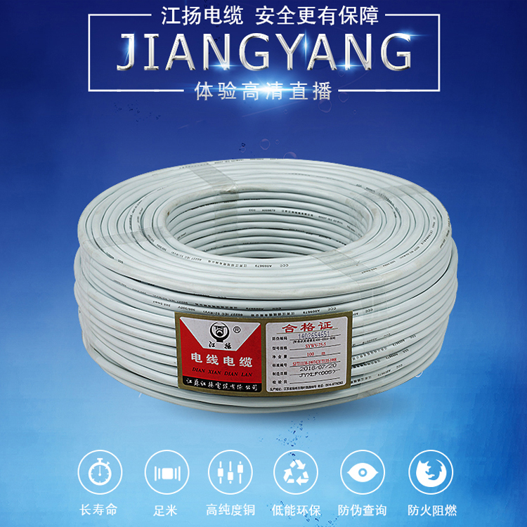 江揚(yáng)電線電纜SYWV 75-5同軸雙層屏蔽 有線電視線國(guó)標(biāo)主線室外干線