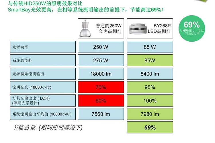飛利浦低天棚LED工礦燈 LED V.S HID 節能分析