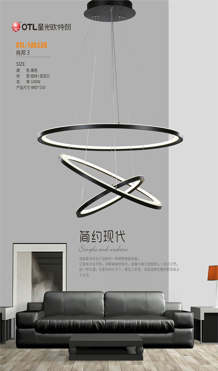 歐特朗OTL-100/LED-客廳簡約吊燈做工精美,簡約風格,不易變形
