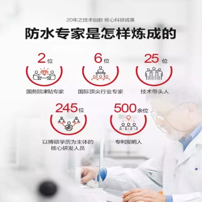 其完全上強度后可抵抗約30米高 水柱的壓力;有效防止膩子起皮、防潮防霉
