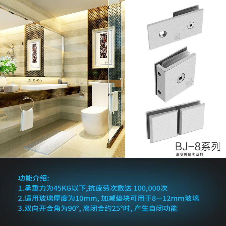 皇冠浴室玻璃夾304不銹鋼180度門夾淋浴房無框玻璃門合頁折頁鉸鏈