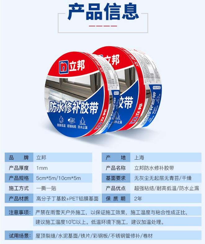 立邦防水膠帶,耐高低溫、超強(qiáng)粘結(jié)、防水止漏、施工便捷