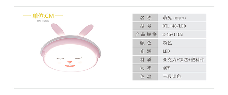歐特朗OTL-48/LED萌兔|現(xiàn)代簡約吸頂燈純美光色,透光均勻,精工五金鍛造,堅固不易變形,安裝在孩子的臥室,舒適溫馨