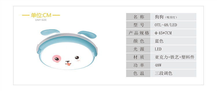 歐特朗OTL-48/LED萌兔|現(xiàn)代簡約吸頂燈藍(lán)色款,光源、材質(zhì)、功率、色溫等參數(shù)