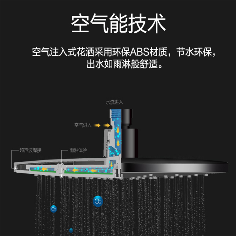 硅膠手持增壓易潔淋浴花灑空氣能技術空氣注入式花灑采用環保ABS材質,