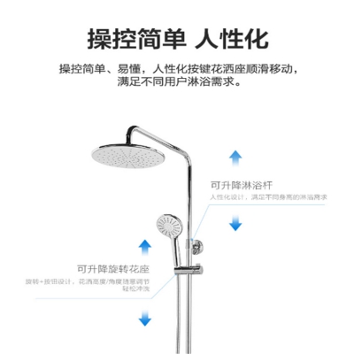 人性化按鍵花灑座順滑移動,滿足不同用戶淋浴需求。