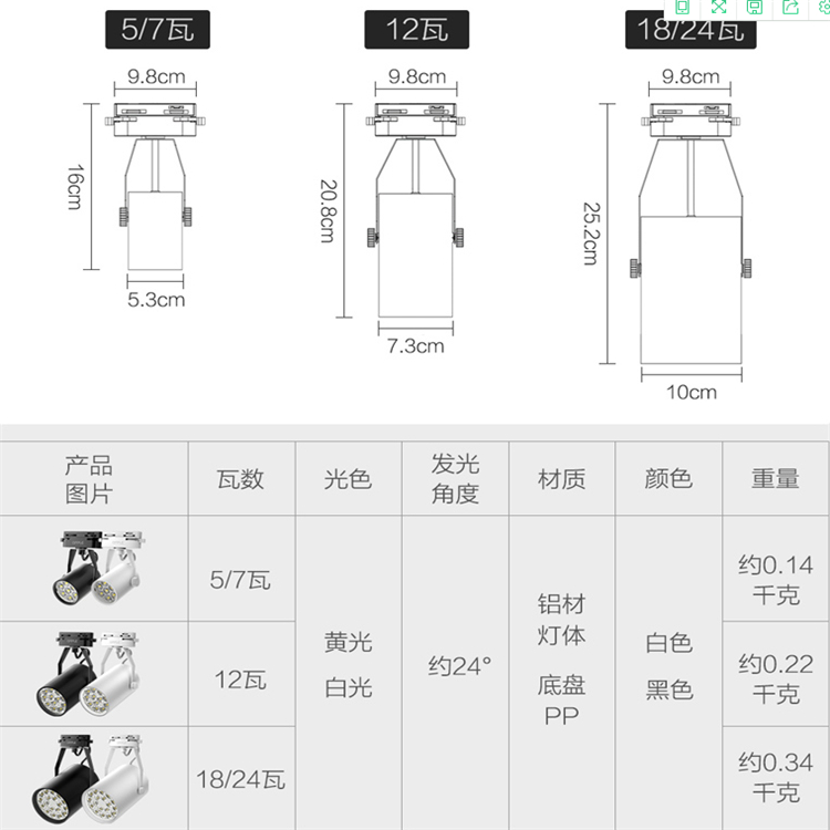 LED軌道射燈 店鋪商用聚光展廳家用背景墻射燈 買就送1米軌道