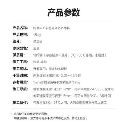 東方雨虹防水防水涂料400彩色高彈,禁止加水?dāng)嚢?/span>