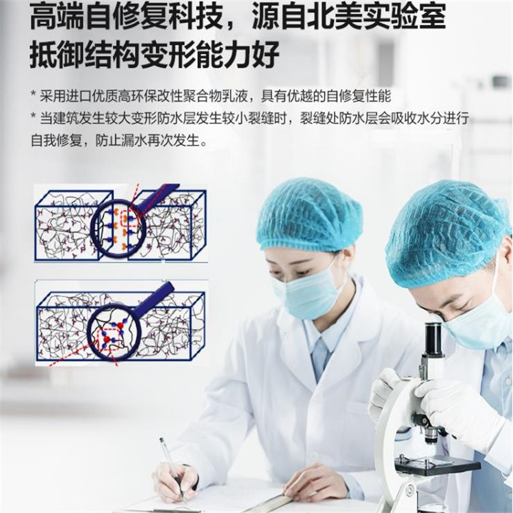 采用進口優質高環保改性聚合物乳液,具有優越的自修復性能