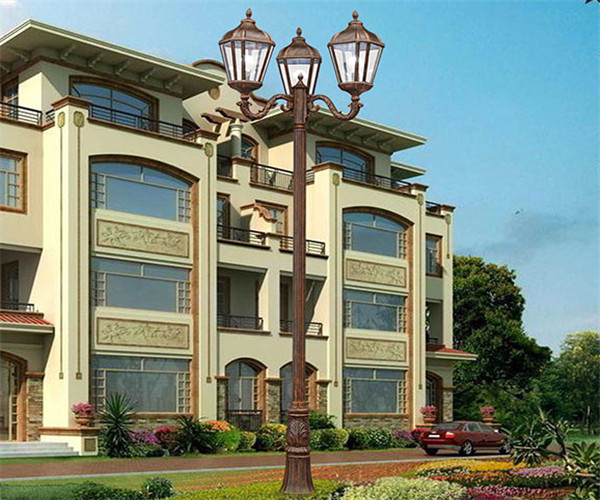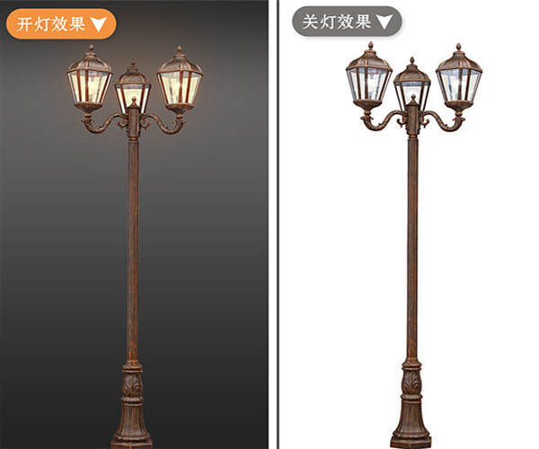帝輝歐式戶外庭院燈花園別墅高桿照明路燈開燈效果展示圖