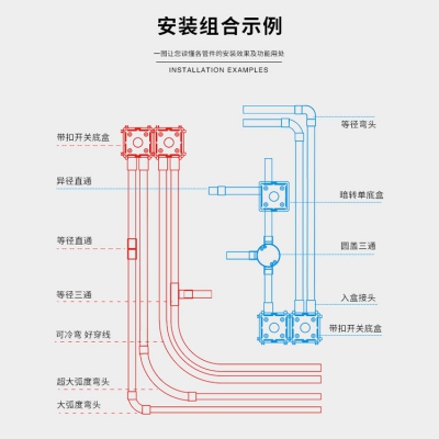 日豐管 pvc穿線管配件家用絕緣阻燃強弱電分離暗裝 異徑直通,