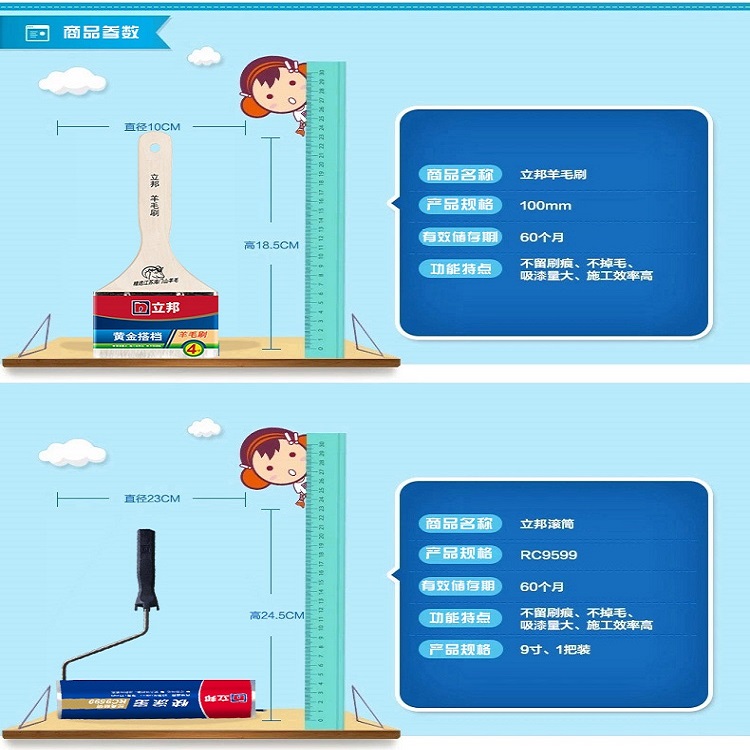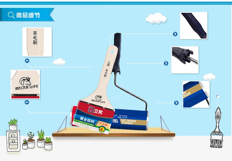 立邦涂刷禮包油漆涂料輔助工具滾筒9寸彈性羊毛刷4寸