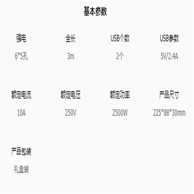 公牛抗電涌防過載插線板 GN-H4053基本參數圖。