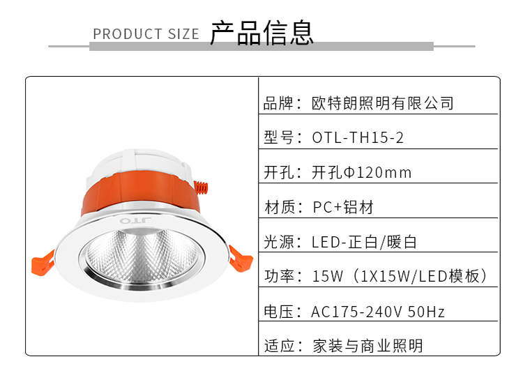 歐特朗OTL-TH152天花射燈|LED嵌入式射燈客廳天花射燈LED射燈具體參數(shù)如圖