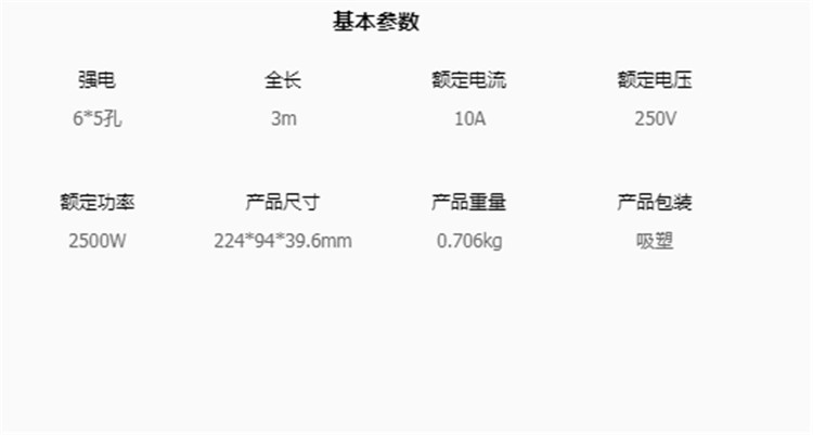 公牛GN-H3060抗電涌插線板插座接線板基本參數圖
