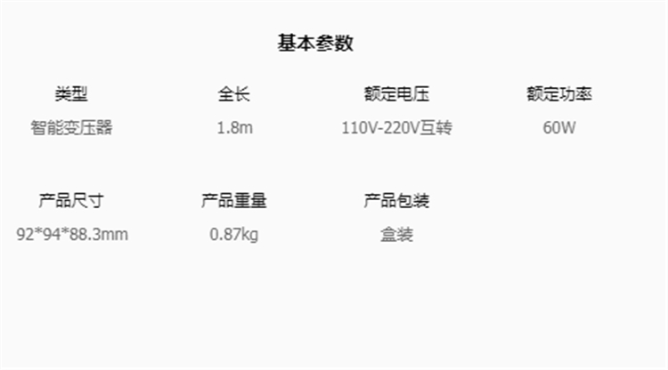 公牛P1 GN-P1W電源變壓器基本參數圖