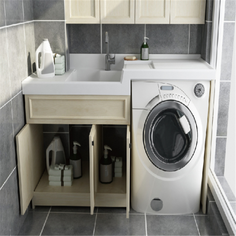 合理利用空間,讓洗衣機找到棲身之所,精選人造石盆,機洗手洗,輕松切換,豐富高效收納鋁合金洗衣柜靈活的收納空間,容納日常洗浴物品。