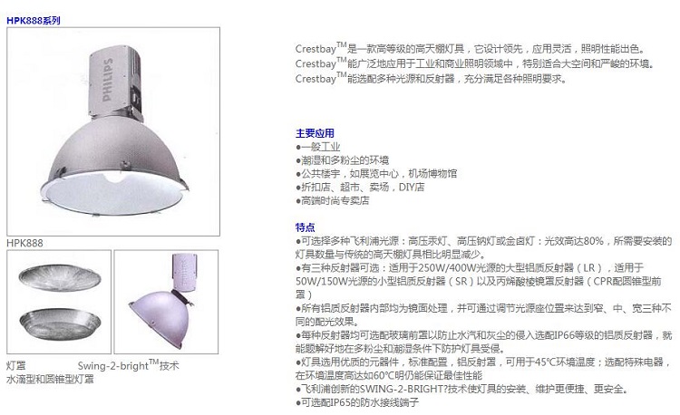 廣泛地應用于工業(yè)和商業(yè)照明領域中,特別適合大空間和嚴峻的環(huán)境