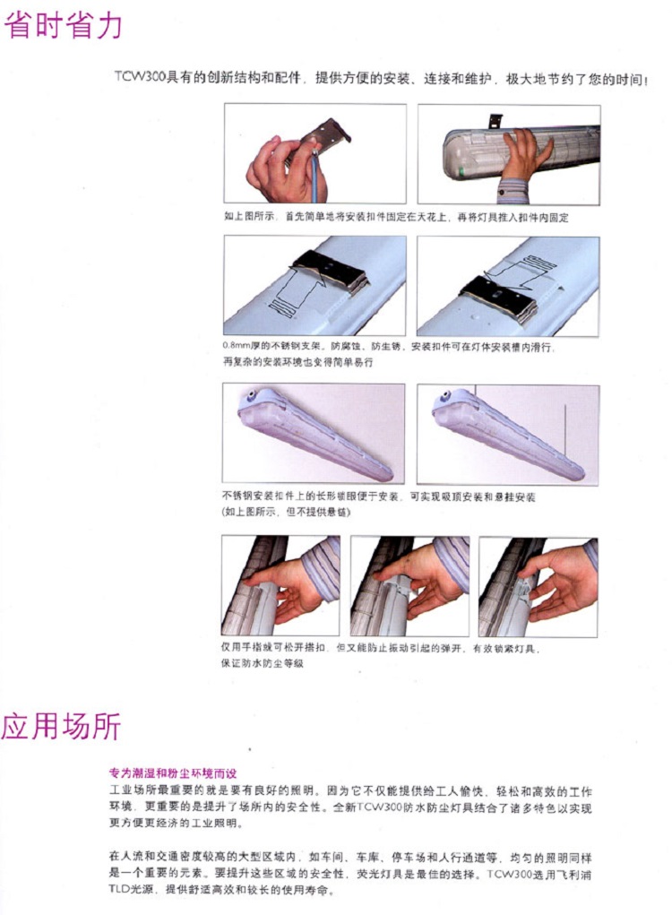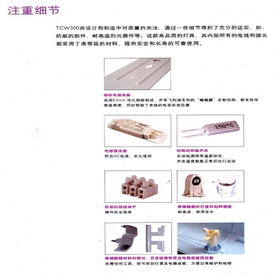 專業設計的密閉結構,經久耐用的抗紫外聚碳酸醋燈體和前罩,結合特別設計的搭扣,有效地保證TCW300的防水和抗沖擊性能。
