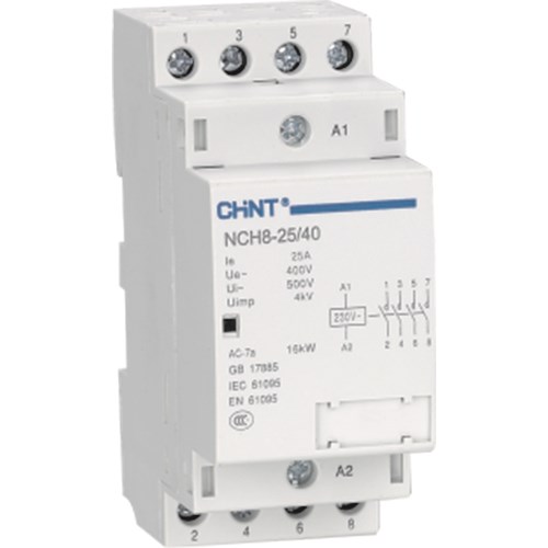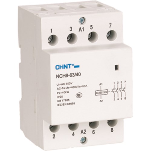 正泰NCH8系列家用交流接觸器(以下簡稱接觸器)主要適用于交流50Hz(或60Hz),額定工作電壓至400V額定工作電流至63A的電路中,控制家用電器和類似用途的低感微感負載。